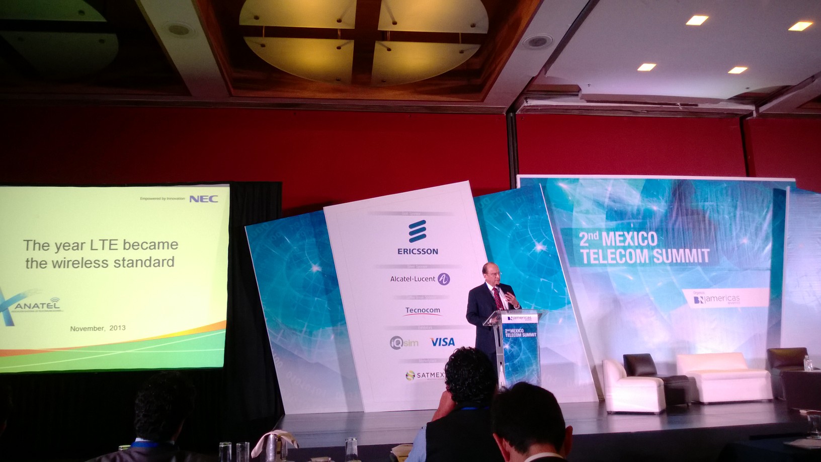El Presidente de Anatel, Ing. Enrique Leiva Amour, participó como ponente en la Segunda Cumbre de Telecomunicaciones organizada por la organización BNAmericas en la Ciudad de México, los días 27 y 28 de noviembre. Como el año anterior, el evento logró una convocatoria de primera línea, esta vez con la participación del Subsecretario José Ignacio Peralta y otras autoridades del país; expertos de talla mundial de empresas patrocinadoras que son socios de Anatel, como el caso de Ericsson y Alcatel- Lucent; y altos ejecutivos de varios socios más que fungieron como ponentes en los paneles de discusión.